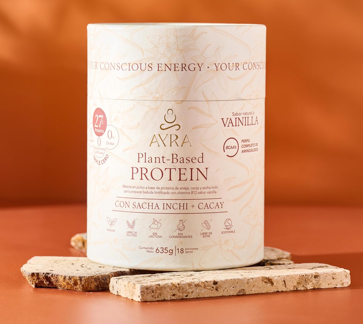 AYRA Proteína natural de sabor a vainilla a base de plantas con sacha Inchi + cacay