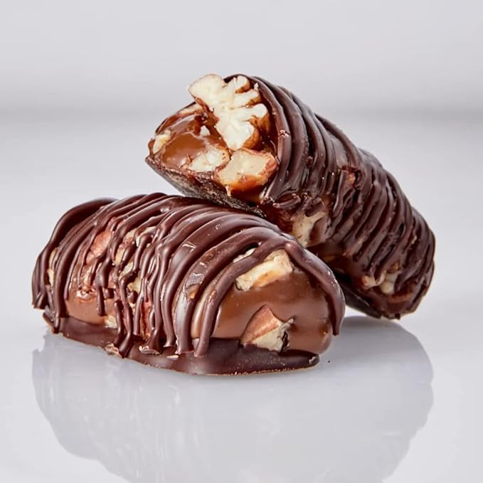 1 paquete de Dos rollos de caramelo inglés incrustados en nueces tostadas seleccionadas, no solo bañadas en chocolate gourmet, sino sofocadas.